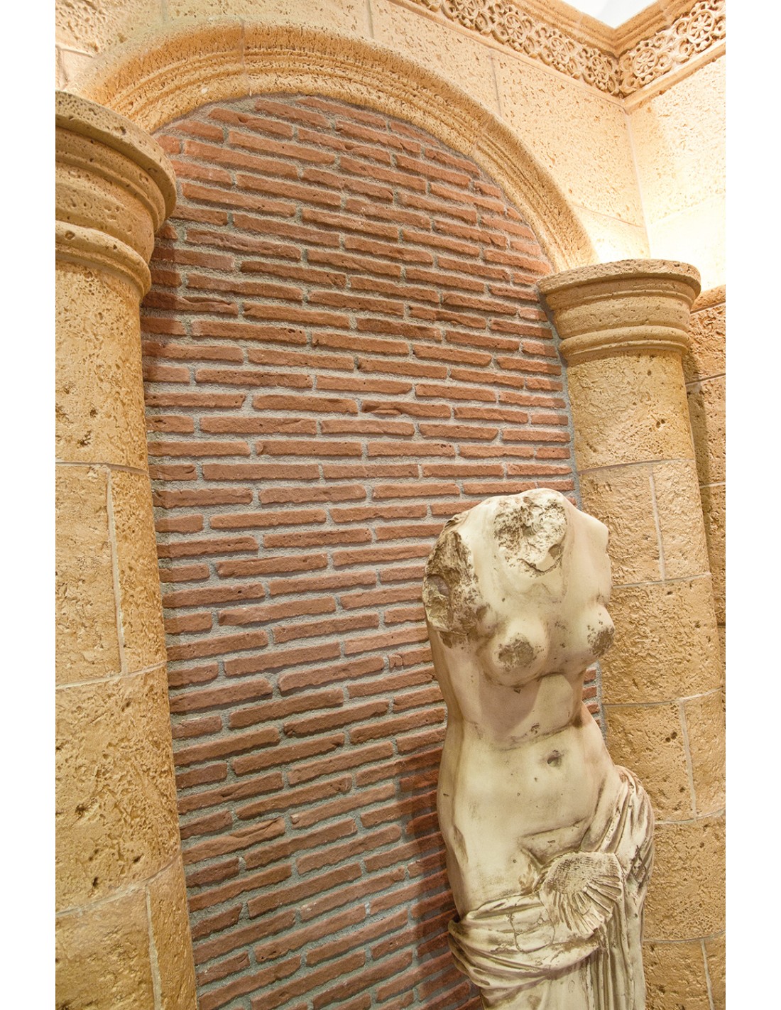 Revestimiento de hormigón aligerado aspecto ladrillo fino y alargado para interior y exterior. Disponible en 2 colores: amanecer y támesis.